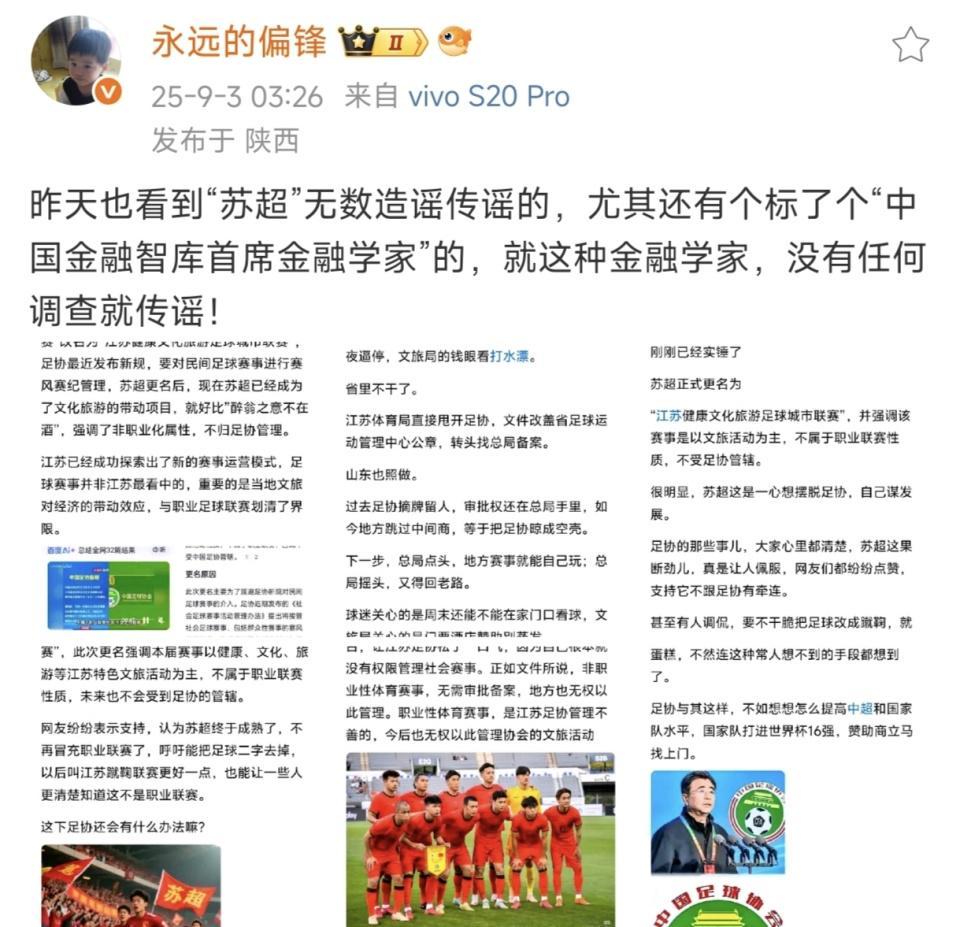 近日,中国足协下发《社会足球赛事活动赛风赛纪管理办法(试行)》,引起热议,不少人造谣苏超联赛因此改名,更是离谱。